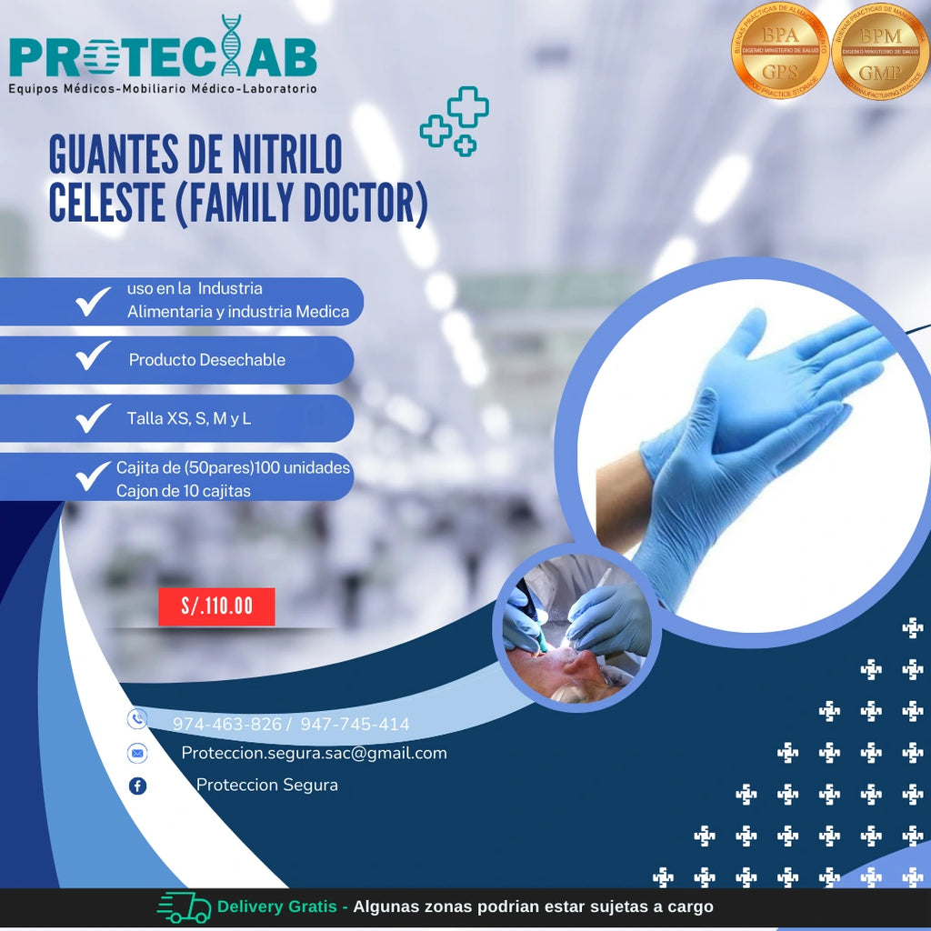 Usos Comunes: Además de la industria médica, los guantes de nitrilo celeste pueden usarse en laboratorios, limpieza, manipulación de alimentos y otras situaciones donde se requiere protección de las manos.