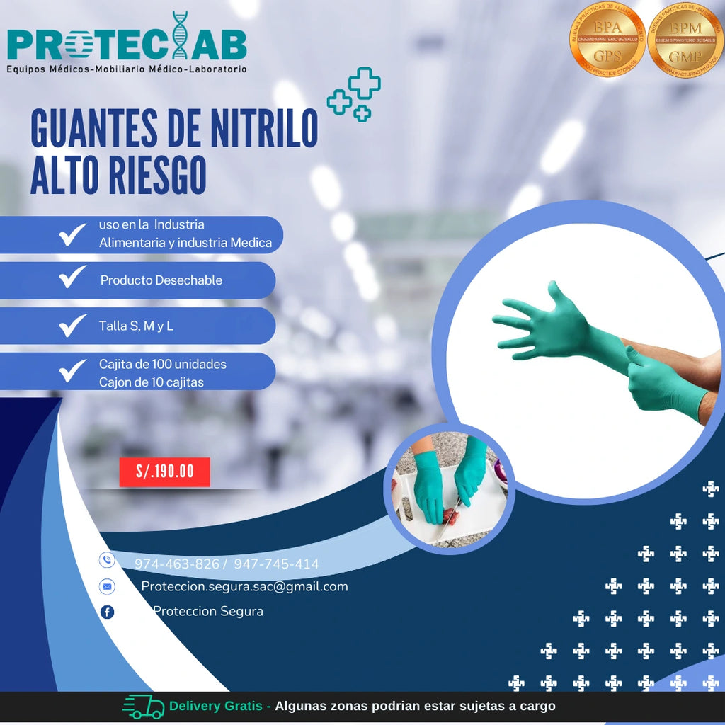 Usos Específicos: Estos guantes se utilizan en una variedad de entornos, incluidos laboratorios, la industria química, la atención médica en situaciones de alto riesgo, limpieza de materiales peligrosos, entre otros.